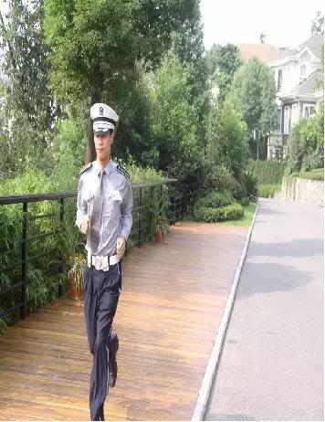 身体重心应稍向前,双眼平视前方(巡逻时可上下左右观察),面带微笑,两臂自然摆动,脚步轻稳,步度适中均匀。巡逻时应比齐步姿势稍慢。