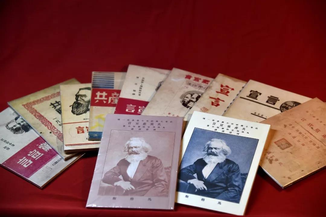 这是广饶县《共产党宣言》纪念馆收藏的早期多个版本《共产党宣言》复制本。新华社记者 郭绪雷 摄